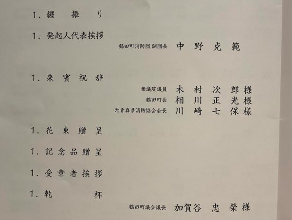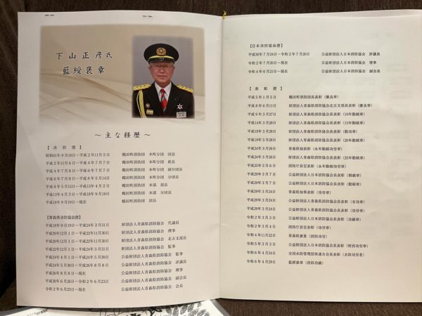 下山 正彦氏(日本消防協会副会長・青森県消防協会長・鶴田町消防団長)の藍綬褒章受章祝賀会 に出席してきました。